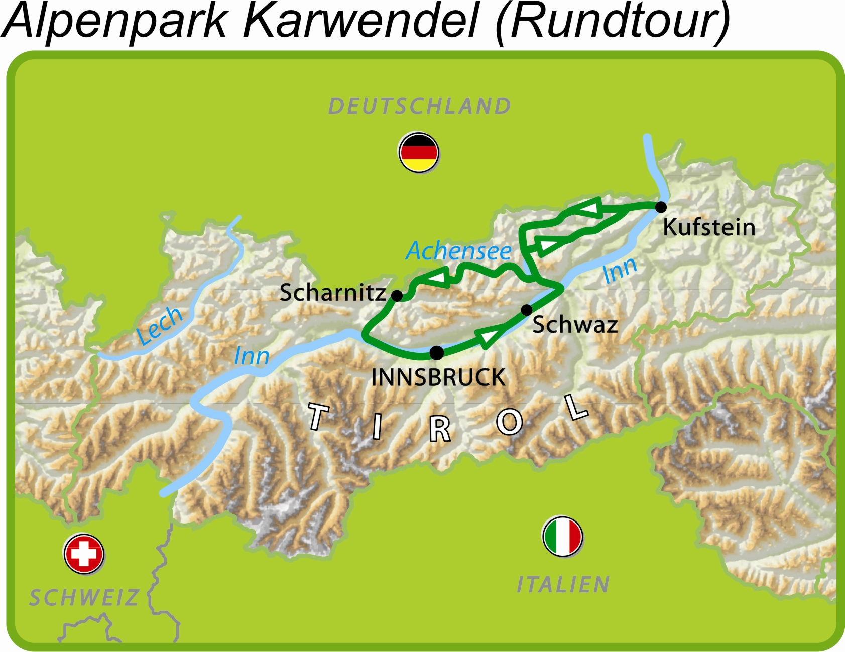 Sportliche Mountainbiker kommen bei dieser Bike Tour auf ihre Rechnung. Der im Mittelpunkt stehende „Star“ ist aber jemand anderer – das Karwendelgebirge! Nicht umsonst ist der Alpenpark Karwendel das älteste und eines der größten Naturschutzgebiete Tirols. Keine andere Region der Nördlichen Kalkalpen hat sich ihre Wildheit und Vielfalt derart unverfälscht bewahren können. Unzählig sind die landschaftlichen Höhepunkte der Region: der Achensee schmiegt sich gleich einem Fjord zwischen die hohen Berge und erstrahlt in karibischem Türkis. Beeindruckende Gebirgsketten begrenzen blumenreiche Almen. Uralte Baumriesen erwarten den staunenden Biker in der Eng. Und die wilden Flüsse des Karwendels bahnen sich bis heute ungebändigt ihren Weg. All diese Vielfalt und noch etliche weitere Höhepunkte machen diese Tour zu einem Erlebnis der – nicht zuletzt sportlichen – Superlative.